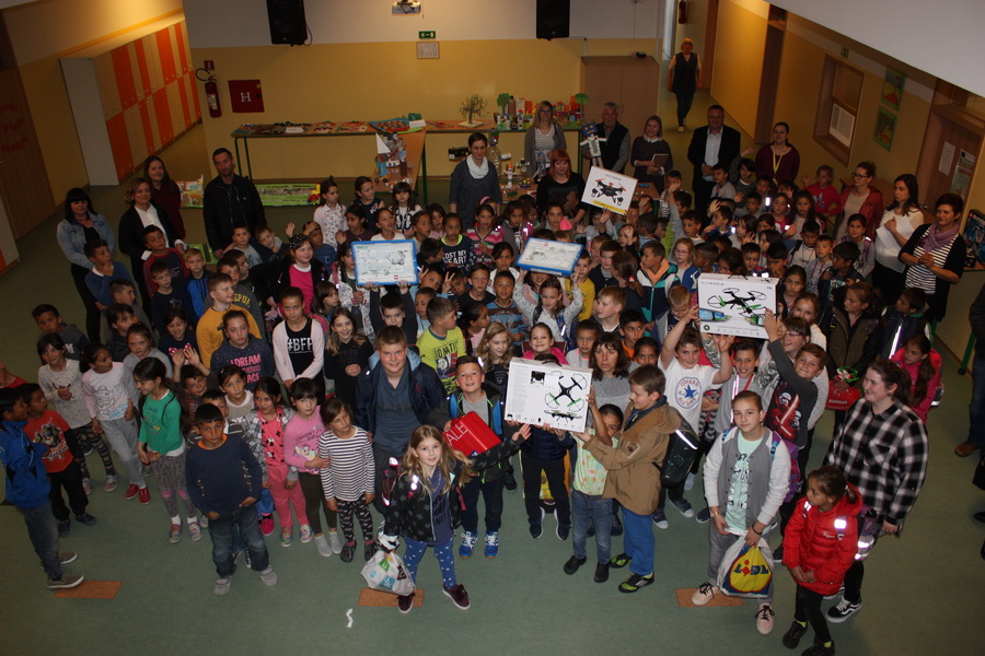 Nagrade za najbolje radove bili su dronovi i LEGO setovi, a u ime pobjedničkih razreda primili su ih predsjednici razreda. Dronove su osvojili učenici 1. b, 2.b, 3. b i 4.b razreda, dok su LEGO setove osvojili učenici 3.a razreda i PŠ Podbrest. Nagrade je pobjednicima uručio načelnik Franjo Bukal.