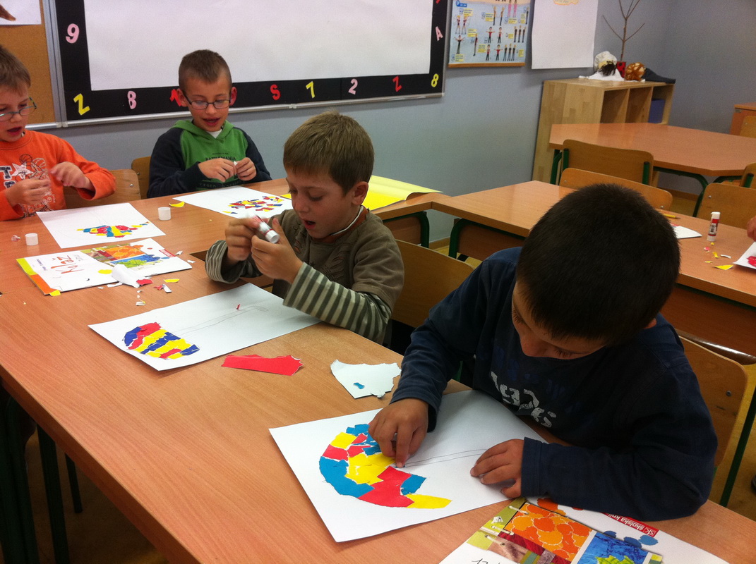 Stigla je jesen i u 1. a razred. Ali ni ovog puta nije stigla sama. Sa sobom je dovela svoje vjerne prijatelje: vjetar i tamne kišne oblake. Oblaci su se nagomilali te je iz njih počela padati prava jesenja kiša. Kako ne bi pokisli, učenici su izradili prekrasne kišobrane iz kolaža koristeći se pri tom osnovnim bojama: crvenom, žutom i plavom. Vjetar pak se neprestano igrao sa lišćem koje je počelo polagano gubiti svoju boju. Vodenim bojama učenici su dočarali šareni svijet jesenskog lišća. Također, iz gline su izradili prekrasne životinjice: sićušne, slatke, ali i one mrvicu opasnije. Što je sve jesen donijela u naš razred, pogledajte u nastavku…