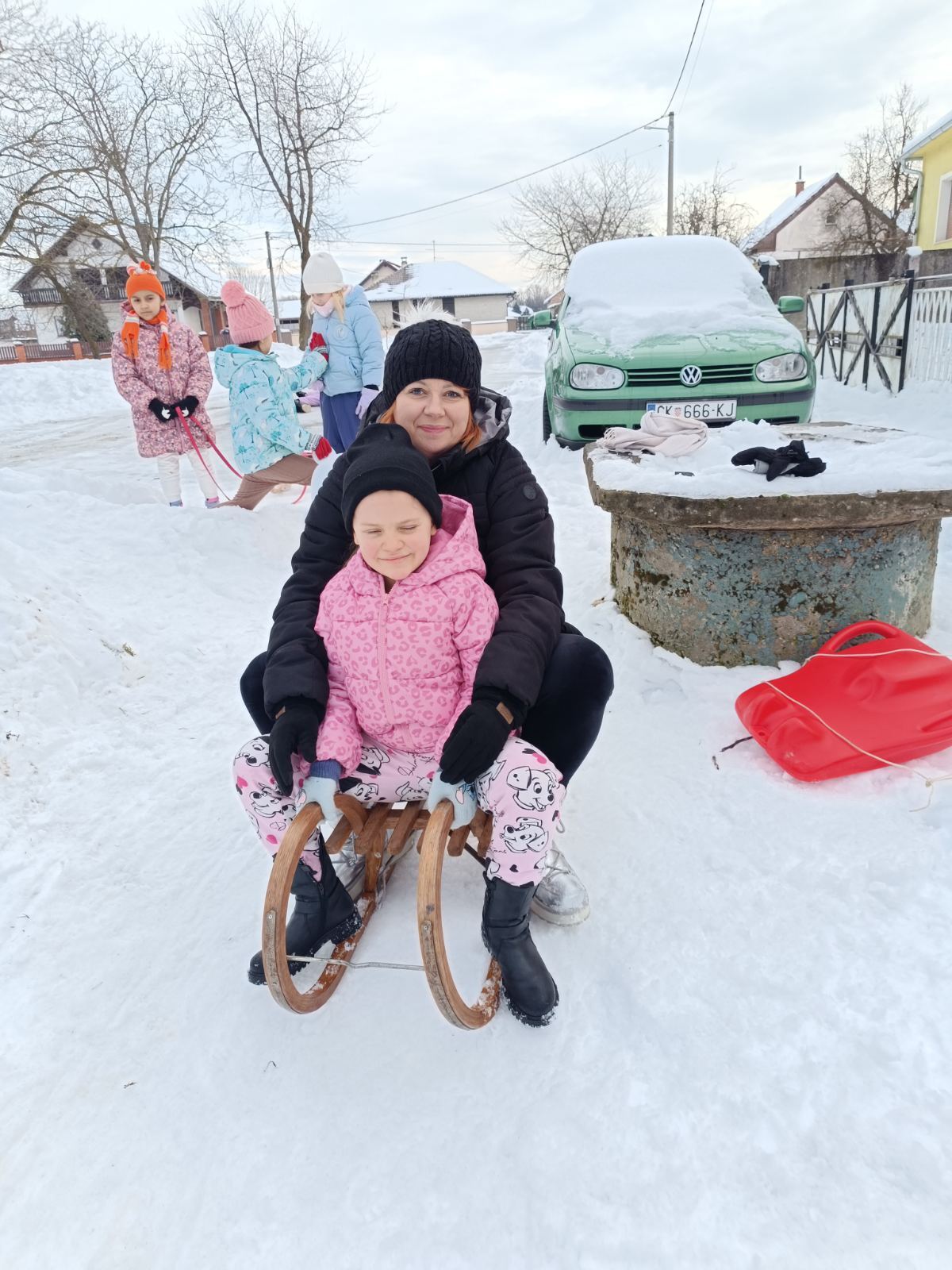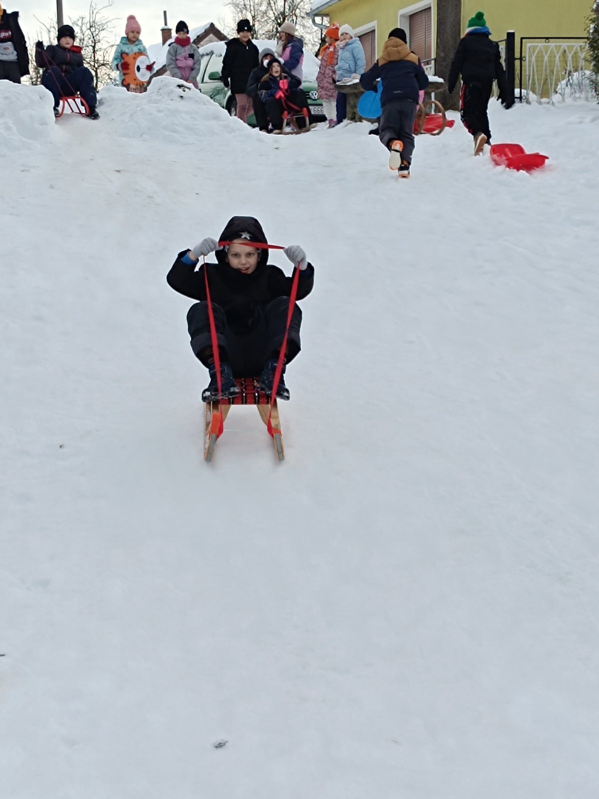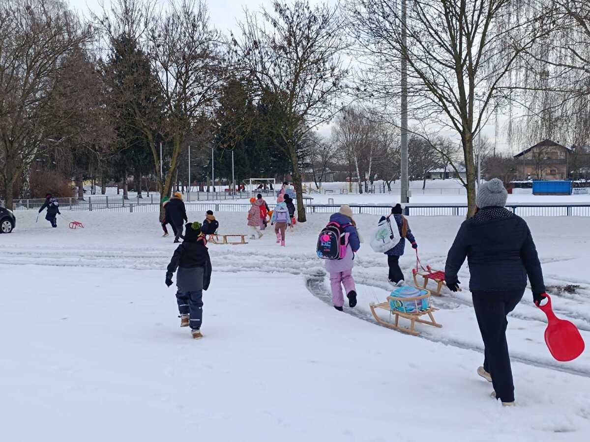 Ove zime konačno smo dočekali pravi snijeg. Odrasli mu se baš i nisu toliko veselili kao mi. Bili smo uzbuđeni i sretni kad smo čuli da nas naše učiteljice Petra i Tatjana vode na sanjkanje. Toplo obučeni u utorak, 13. siječnja krenuli smo na obližnji brežuljak. Tamo smo uživali u sanjkanju i igrama na snijegu. Zimskim radostima nisu mogle odoljeti niti naše učiteljice koje su se sanjkale zajedno s nama.