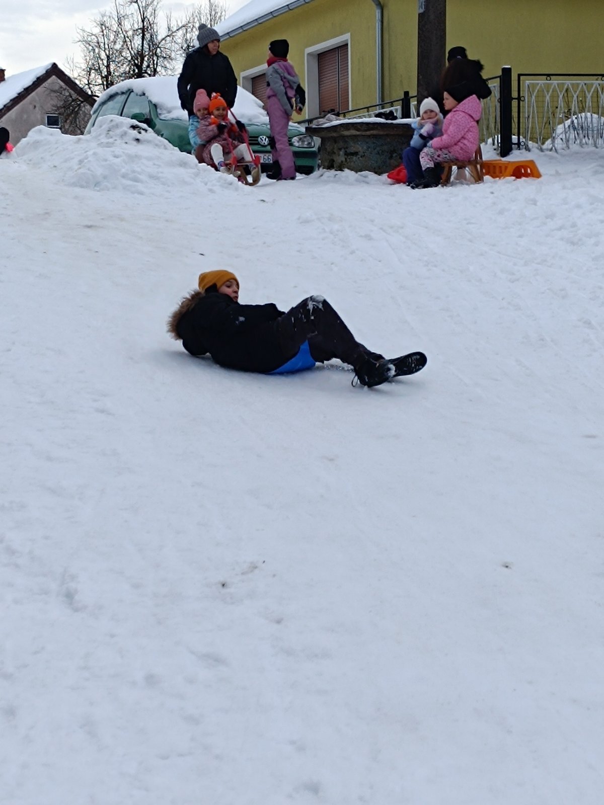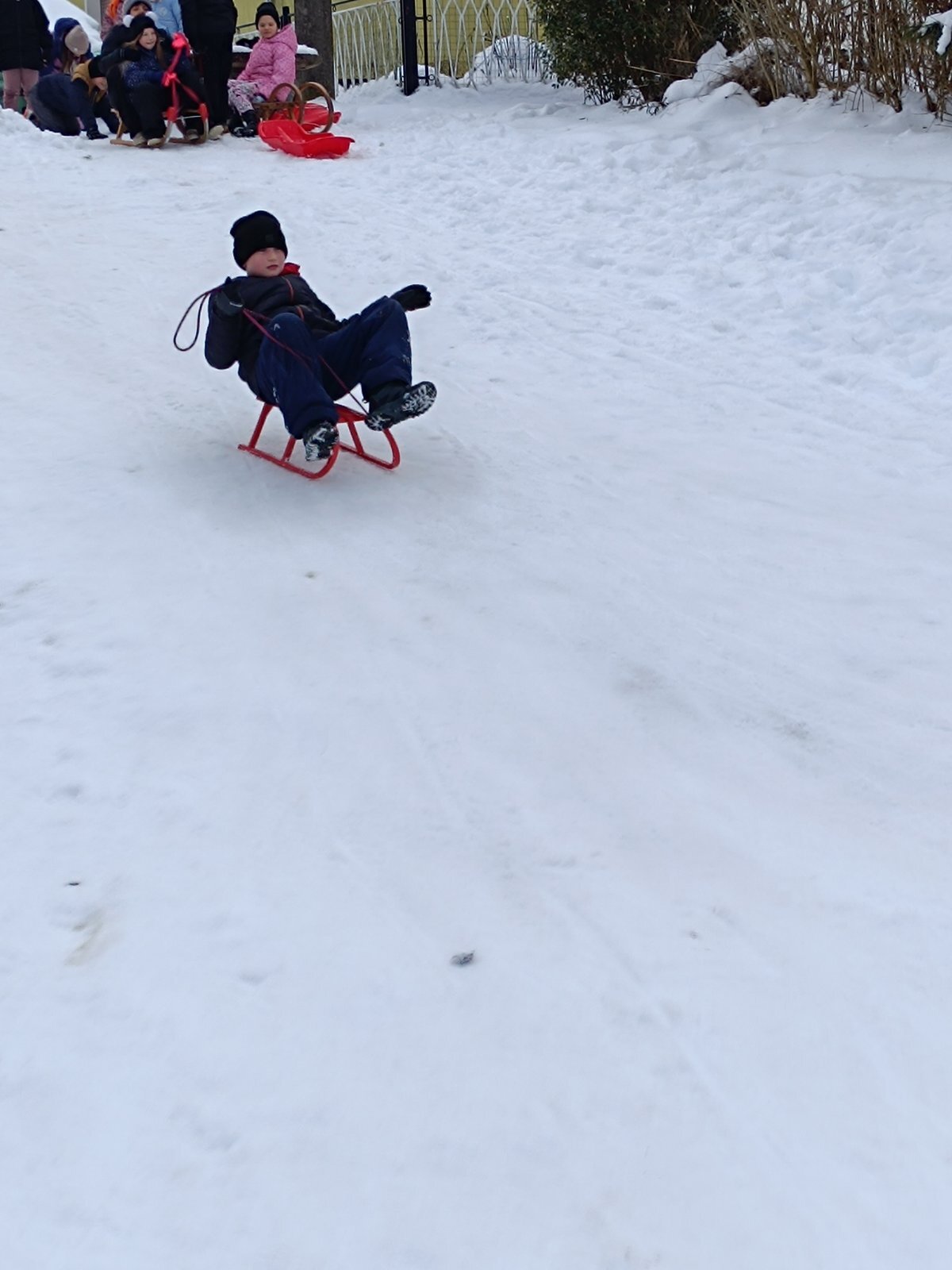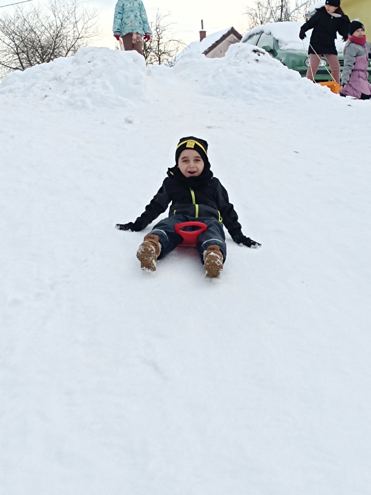 Ove zime konačno smo dočekali pravi snijeg. Odrasli mu se baš i nisu toliko veselili kao mi. Bili smo uzbuđeni i sretni kad smo čuli da nas naše učiteljice Petra i Tatjana vode na sanjkanje. Toplo obučeni u utorak, 13. siječnja krenuli smo na obližnji brežuljak. Tamo smo uživali u sanjkanju i igrama na snijegu. Zimskim radostima nisu mogle odoljeti niti naše učiteljice koje su se sanjkale zajedno s nama.