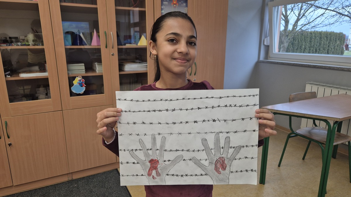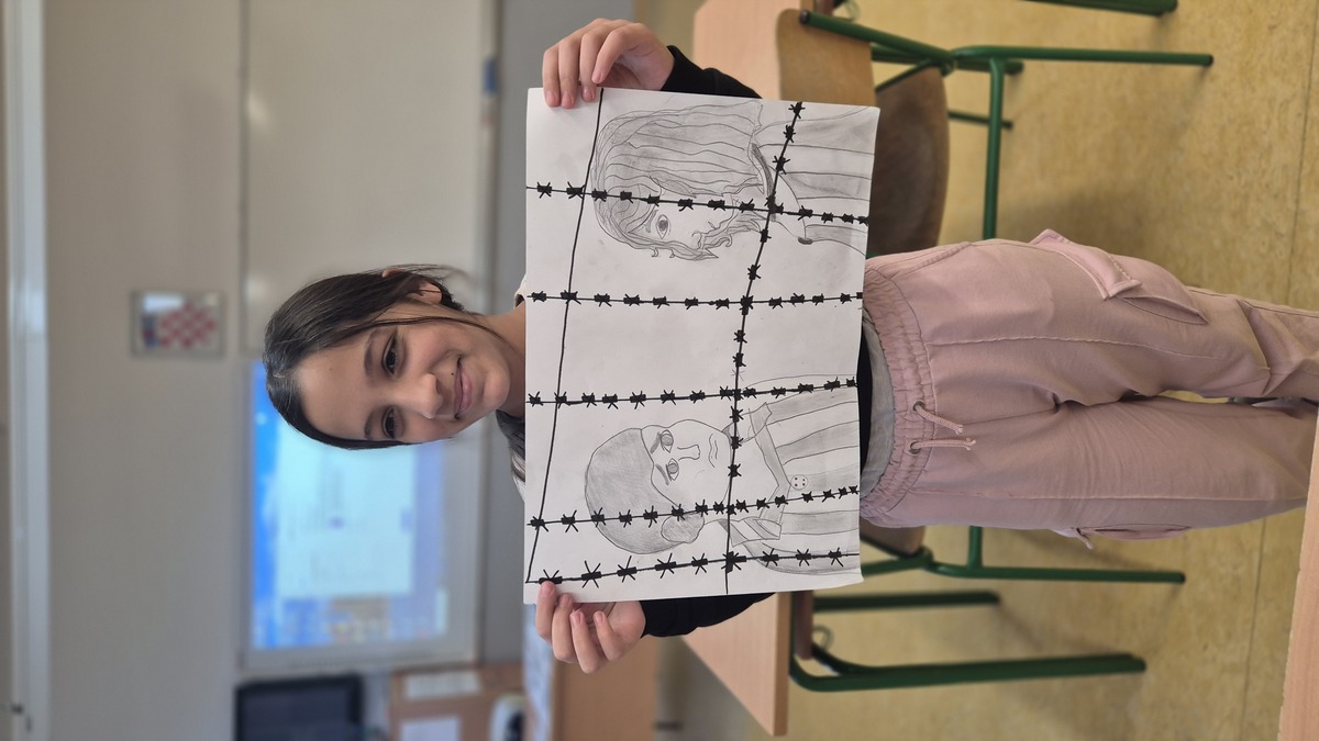 Kroz različite nastavne aktivnosti učenici su se upoznali s povijesnim činjenicama o holokaustu – sustavnom progonu i masovnom stradanju milijuna ljudi tijekom Drugog svjetskog rata, među kojima su bili Židovi, Romi, osobe s invaliditetom i druge progonjene skupine. Poseban naglasak stavljen je na stradanje Roma, o kojem se u javnosti i obrazovnim sadržajima govori znatno manje. Učenici 7. i 8. razreda kroz istraživački rad proučavali su žrtve holokausta, izrađivali njihove biografije te ih predstavljali pred razredom, čime su razvijali znanja, vještine javnog govora i izražavanja. Učenici 5. i 6. razreda temu su obrađivali kroz likovno izražavanje. Svojim crtežima i likovnim radovima pokazali su kreativnost, ali i suosjećanje prema žrtvama holokausta, izražavajući emocije i poruke mira na sebi primjeren način. Na ovaj smo način nastojali povezati učenje, kreativnost i razvoj empatije te osvijestiti važnost očuvanja sjećanja na holokaust, uz naglasak na stradanje Roma i potrebu da se o toj temi govori otvoreno i s poštovanjem, kako se takvi zločini nikada ne bi ponovili.
