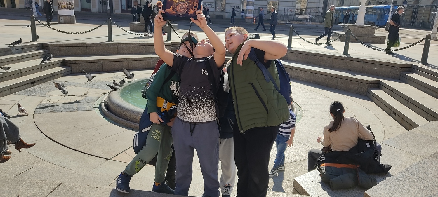 Uz stručno vodstvo razgledali su Muzej iluzija nakon čega su prošetali do Trga bana Josipa Jelačića gdje su imali pauzu. Uslijedio je razgled kulturno-povijesnih znamenitosti grada Zagreba s modernom digitalnom tehnologijom uz stručno vodstvo agencije Zagreb Time Travel. Učenici su koristili tablet koji ih je kroz centar Zagreba vodio uz pomoć proširene i virtualne stvarnosti, prikazujući povijesne likove, događaje i legende na zanimljiv i edukativan način.
