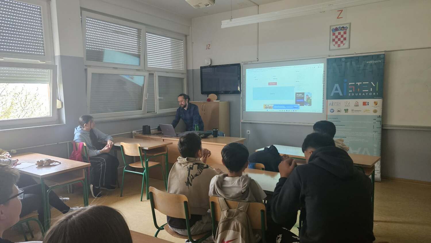 Učenici sedmih razreda sudjelovali su u radionici čija je tema bila „Umjetna inteligencija i njezina primjena u svakodnevnom životu“. Koristili su AI alate za kreativno izražavanje i učili kako umjetnu inteligenciju ispravno koristiti u svakodnevnim aktivnostima.