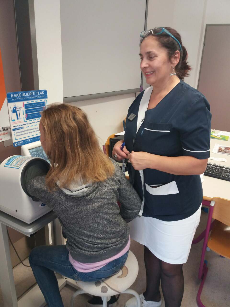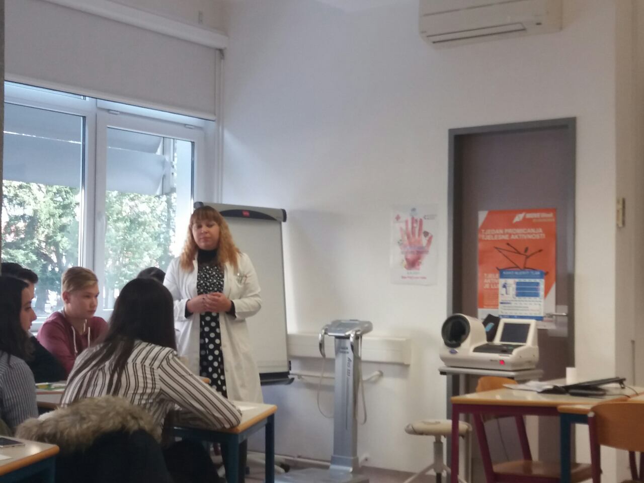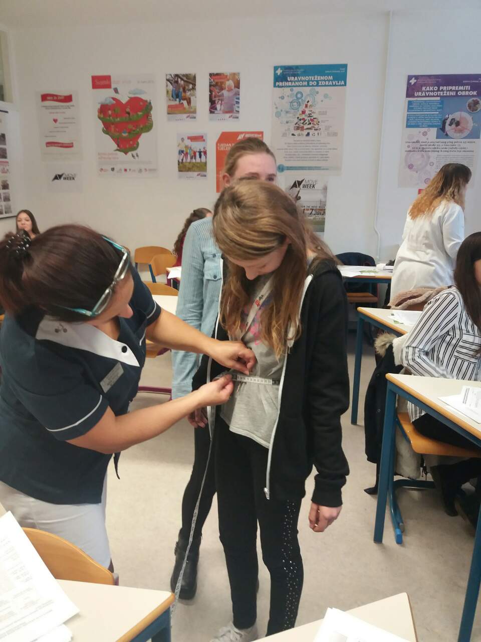 Nakon toga uslijedila su mjerenja koja se provode kad netko zatraži njihovu pomoć. Mogli smo provjeriti svoju težinu na dijagnostičkoj vazi i također izmjeriti krvni tlak. Dobili smo percentiline krivulje po kojima doktori utvrđuju referentne vrijednosti indeksa tjelesne mase i opsega struka za djevojčice i dječake u dobi od 6,5 do 18,5 godina. Analizirali smo dobivene rezultate i naučili barem okvirno isčitati vrijednosti. Uz to dobili smo i recepte za smoothie i energetske pločice.