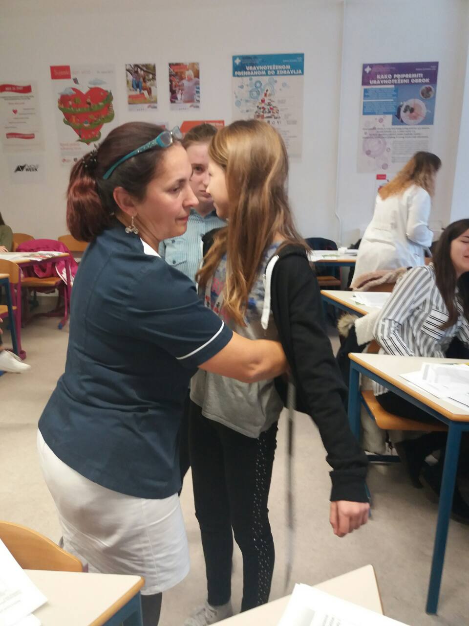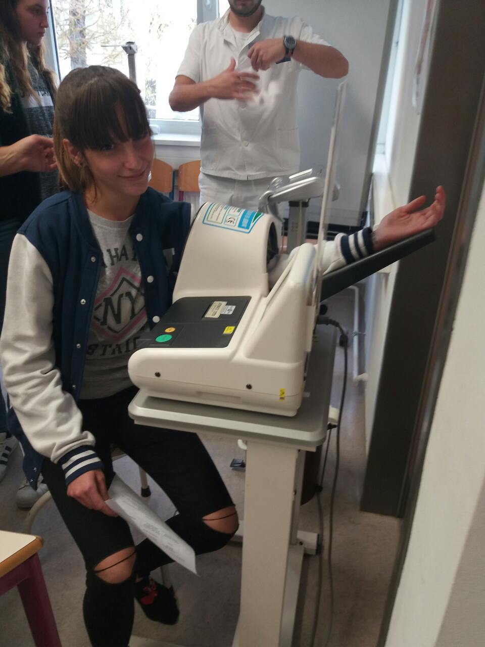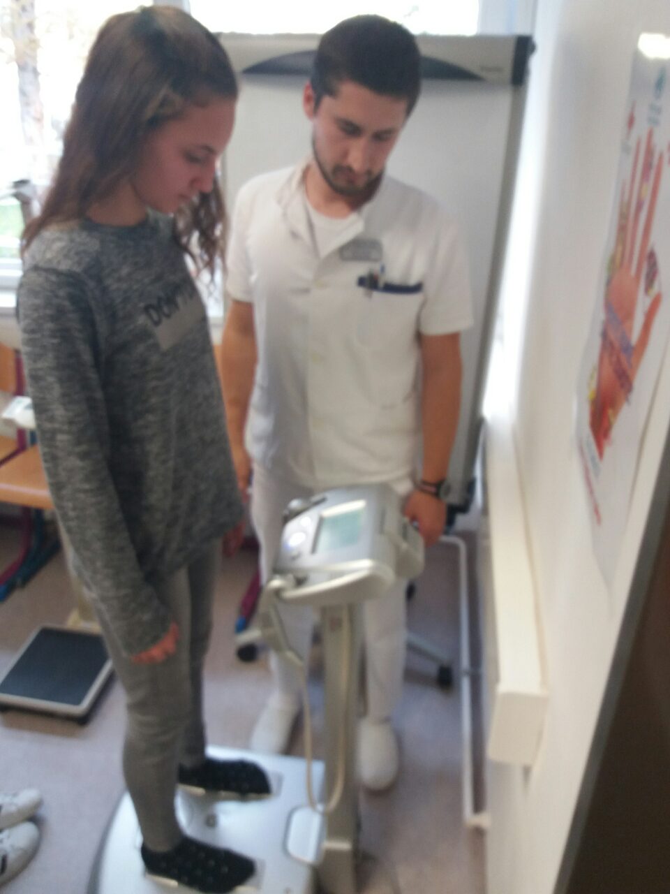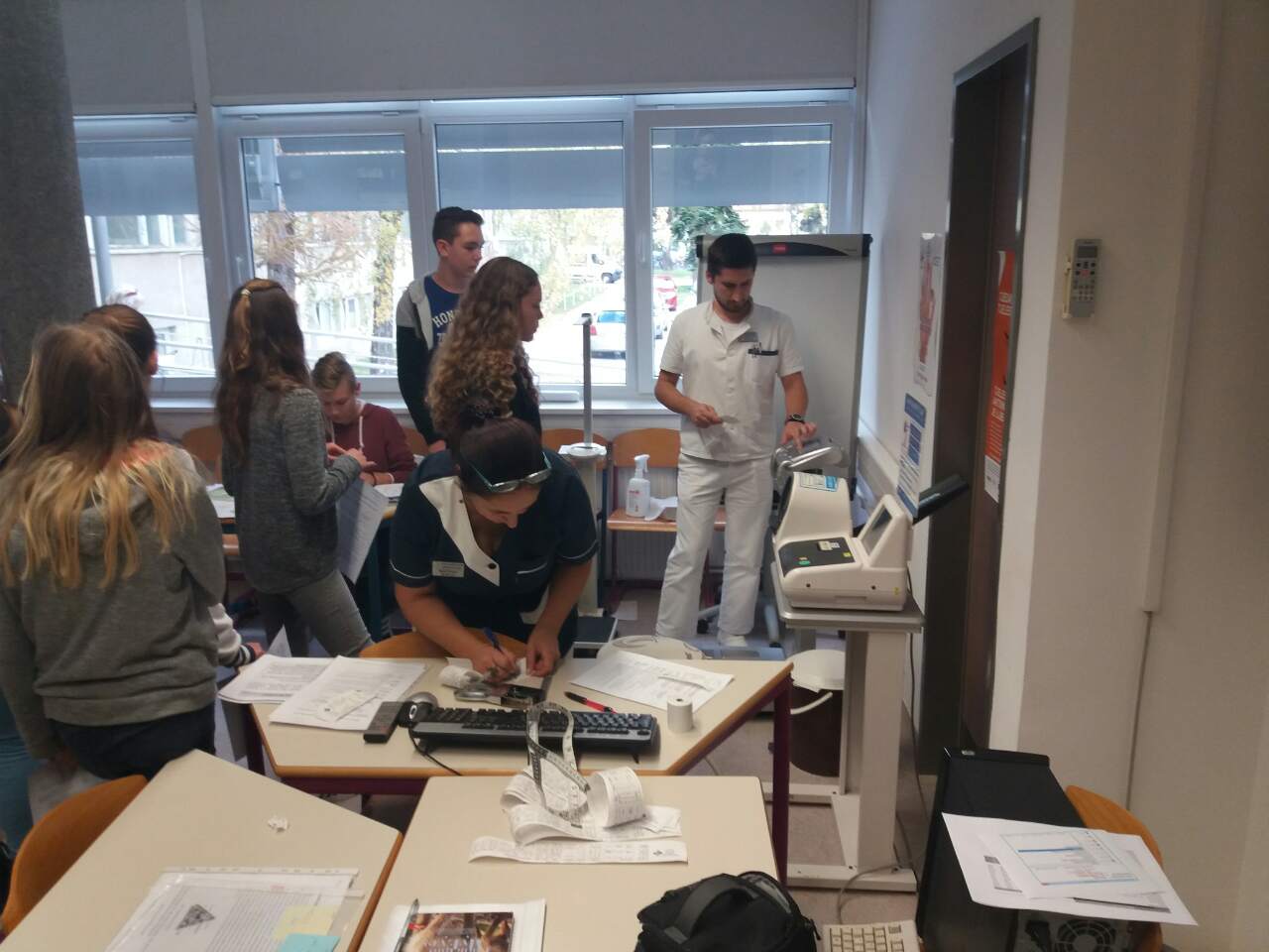 Nakon toga uslijedila su mjerenja koja se provode kad netko zatraži njihovu pomoć. Mogli smo provjeriti svoju težinu na dijagnostičkoj vazi i također izmjeriti krvni tlak. Dobili smo percentiline krivulje po kojima doktori utvrđuju referentne vrijednosti indeksa tjelesne mase i opsega struka za djevojčice i dječake u dobi od 6,5 do 18,5 godina. Analizirali smo dobivene rezultate i naučili barem okvirno isčitati vrijednosti. Uz to dobili smo i recepte za smoothie i energetske pločice.