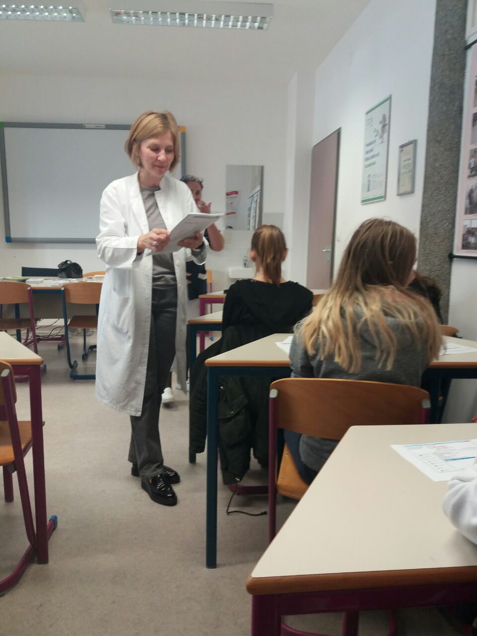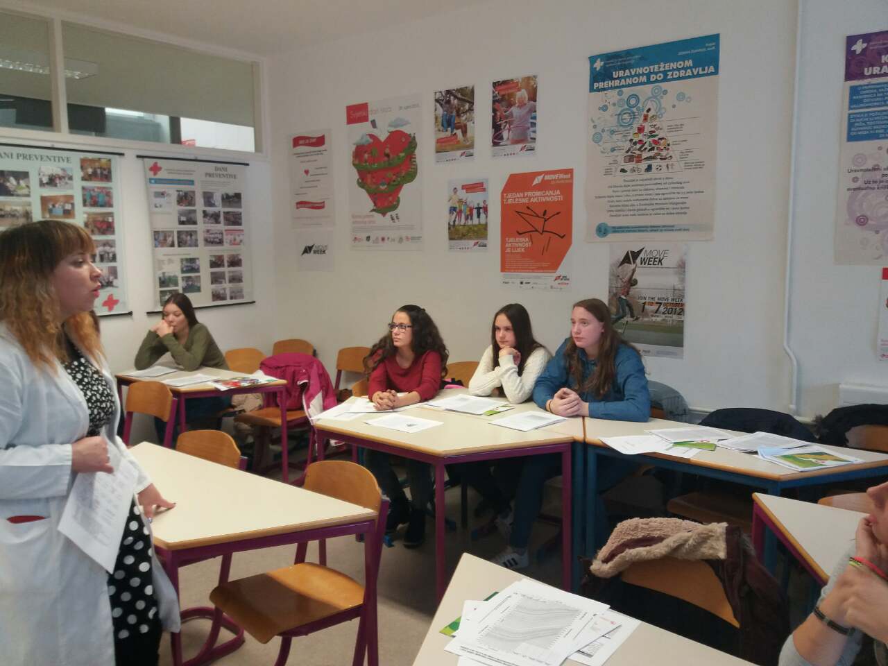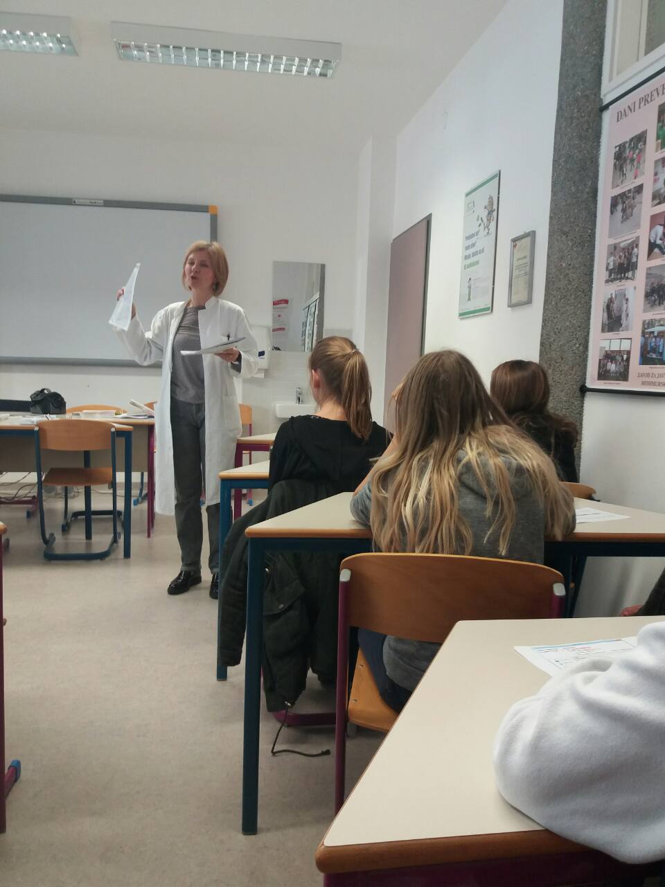 Na početku nam se predstavila liječnica Renata Kutnjak Kiš, specijalistica epidemiologije. Ona nam je ispričala o timu u savjetovalištu i njegovim djelatnostima. Svatko od nas dobio je primjerak izgleda programa u savjetovalištu i brošuru o aktivnom i zdravom životu.