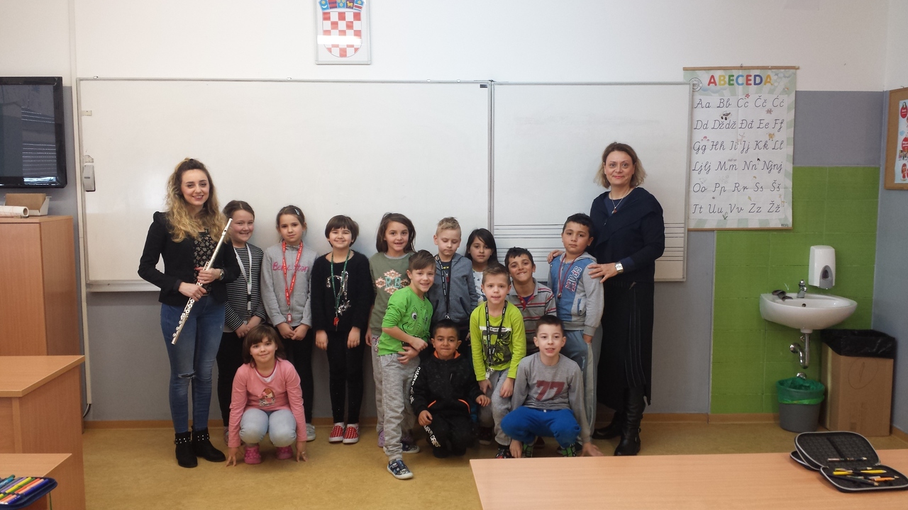 Učenici 1. a razreda započeli su projekt „ Gost razreda“. Prva gošća bila je Marta Povijač. Marta svira flautu i članica je čak dva puhačka orkestra, a pristala je posjetiti nas u razredu i učiniti sat glazbene kulture posebnim.