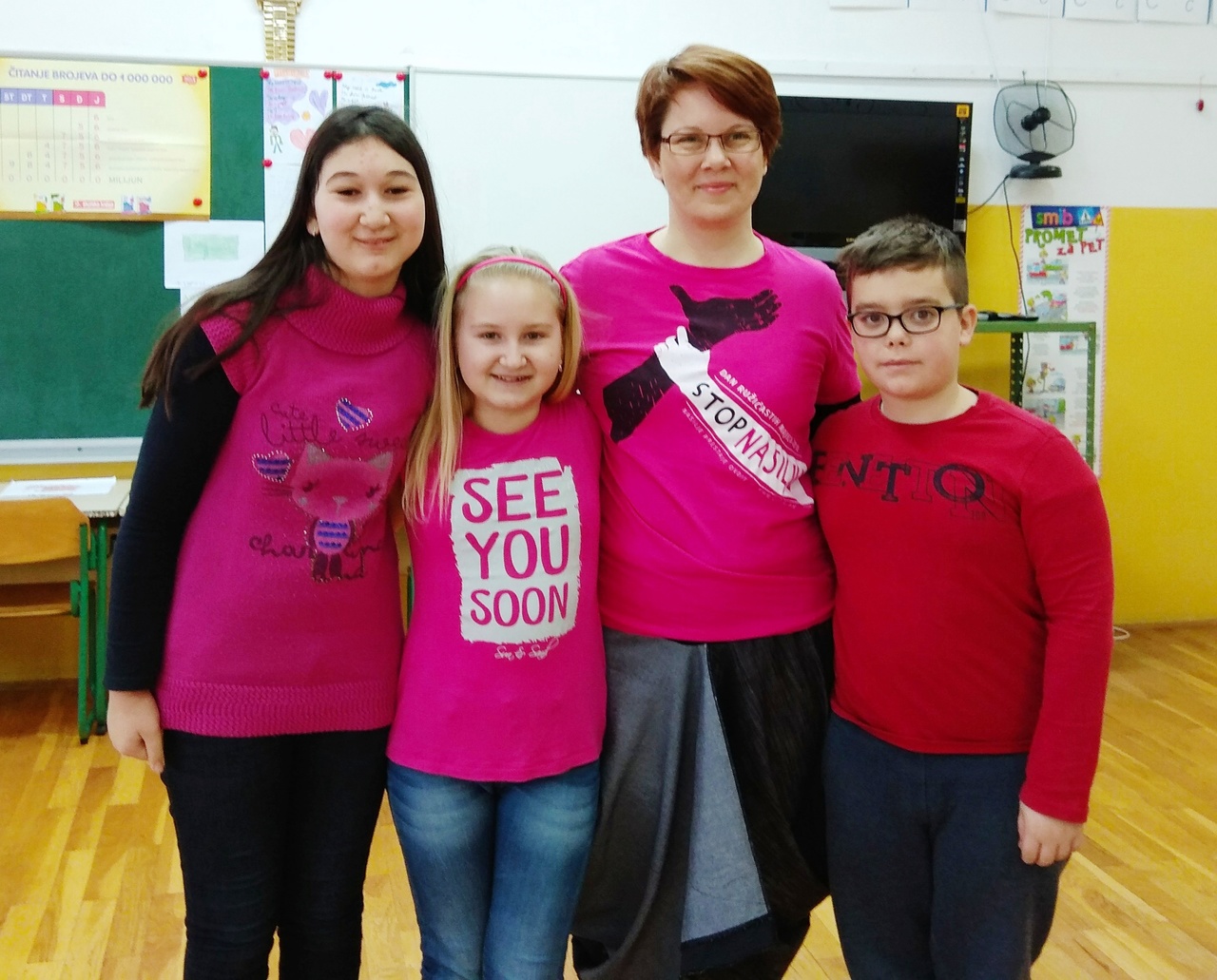 Svaki razred je sa svojim razrednicima radio na temu prevencije vršnjačkog nasilja. Učenici i djelatnici škole su nosili ružičaste majice i time pokazali što misle o nasilju u našoj školi.