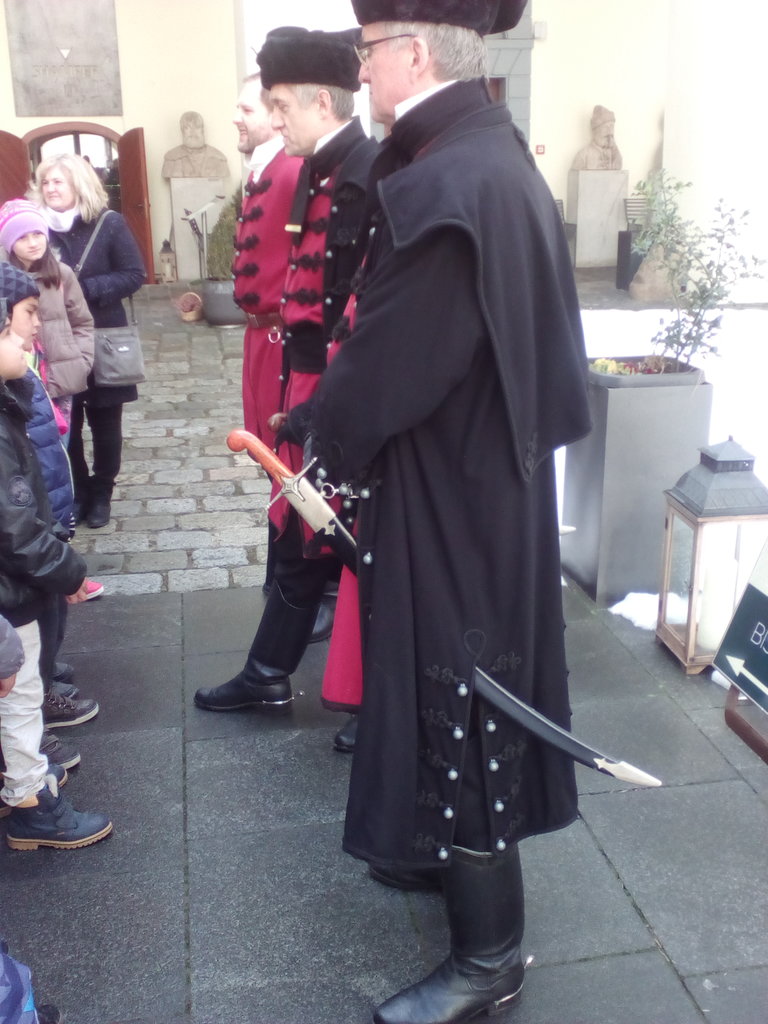 Pravo iznenađenje učenicima bio je susret s članovima Zrinske garde koji su nas dočekali u atriju na izlasku iz Muzeja. Učenici su imali priliku razgovarati s gardistima, upoznati njihovu svečanu odoru i saznati kakav treba biti gardist.