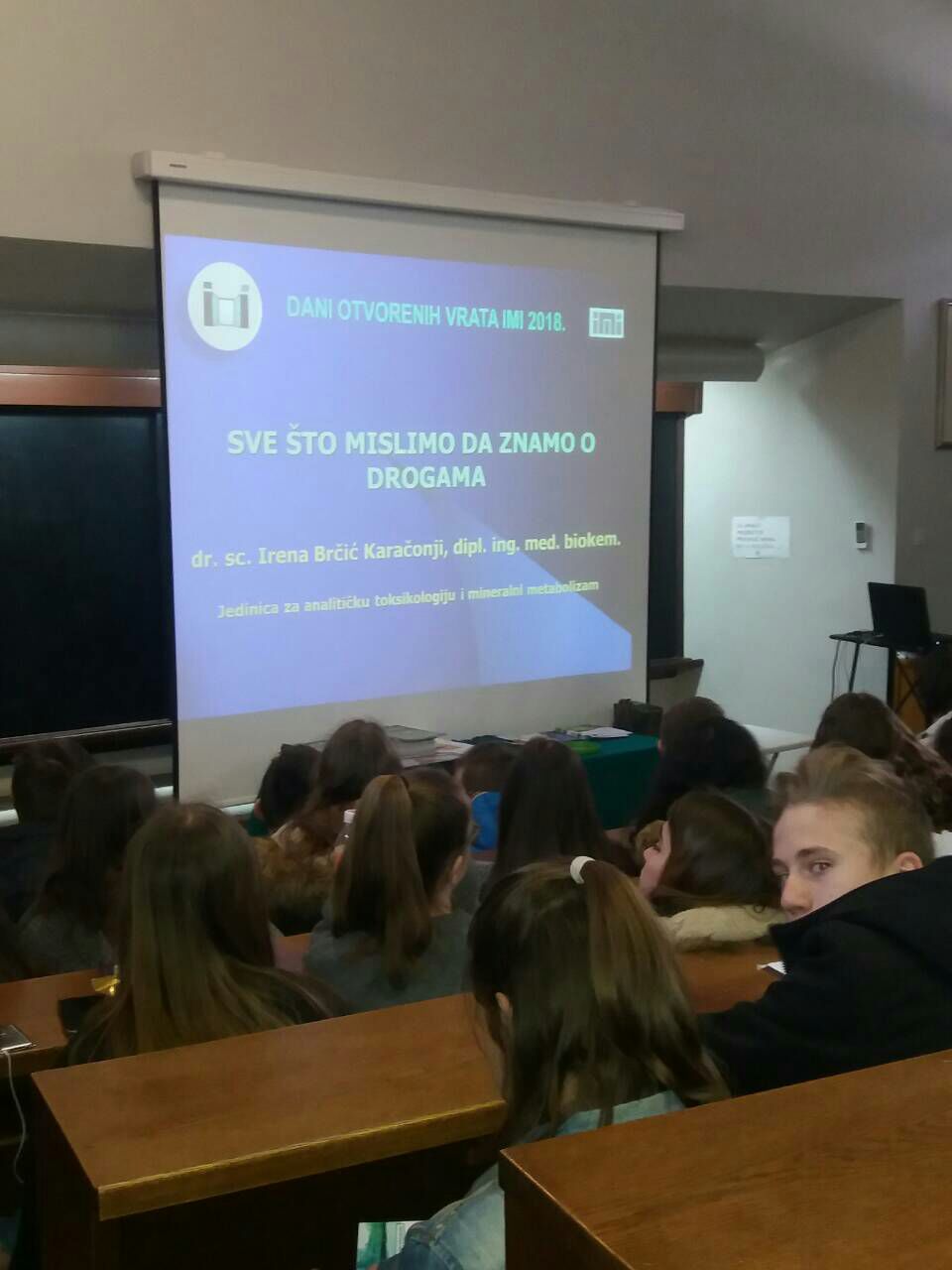Na Institutu za medicinska istraživanja i medicinu rada održavali su se 27. i 28. ožujka 2018. dani otvorenih vrata. Ja sam zajedno s biolozima iz Osnovne škole Hodošan i učiteljicom Kristinom Vrabec 28. ožujka 2018. posjetio Institut. Tamo su se održavala zanimljiva predavanja i radionice.