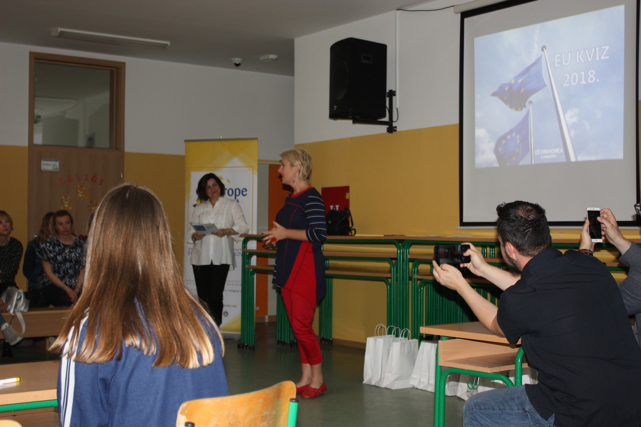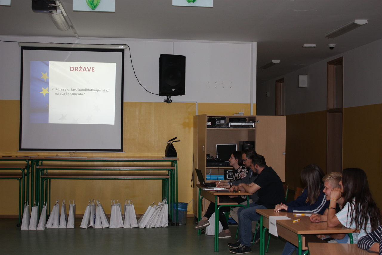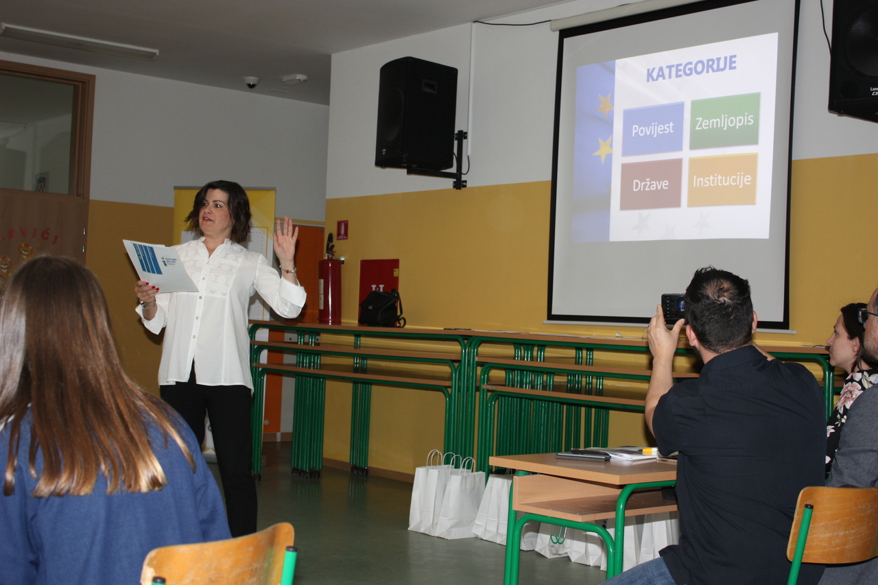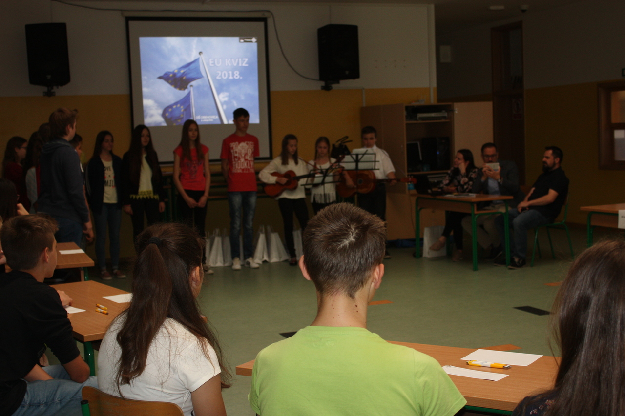 Obilježavanje Europskog tjedna pokrenuto je kako bi se obilježila 2 datuma: 5. svibnja 1949. Dan osnivanja Vijeća Europe te 9. svibnja 1950., Dan potpisivanja tzv. Schumanove deklaracije. Nakon kratkog programa u kojem je nastupilo nekoliko učenika sedmog i osmog razreda otpjevavši Bratec Martin na nekoliko stranih jezika uz pratnju Tamburaške grupe započelo je finale kviza. U ime naše škole nazočne je pozdravila Tanja Oreški.