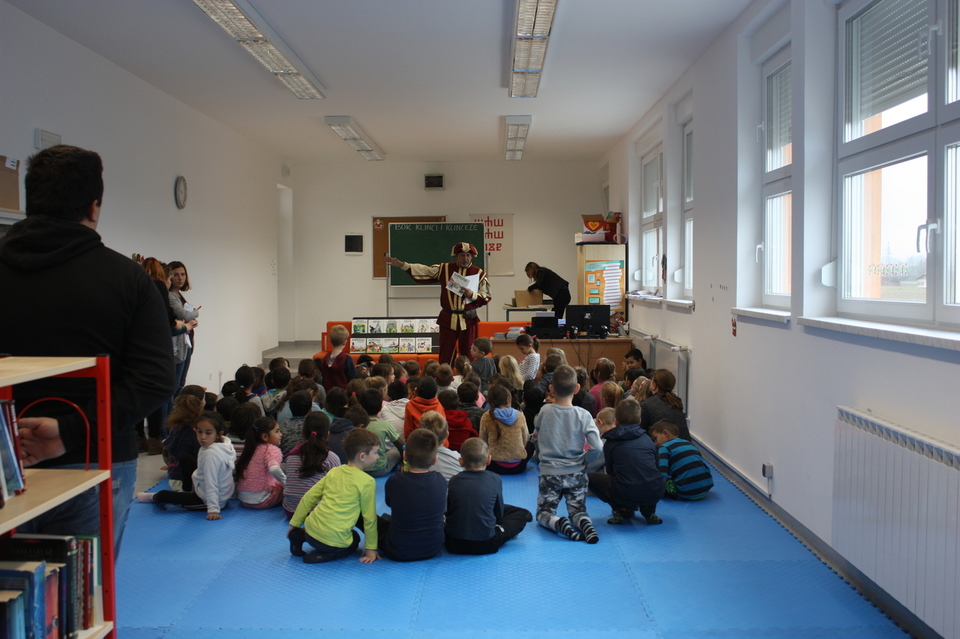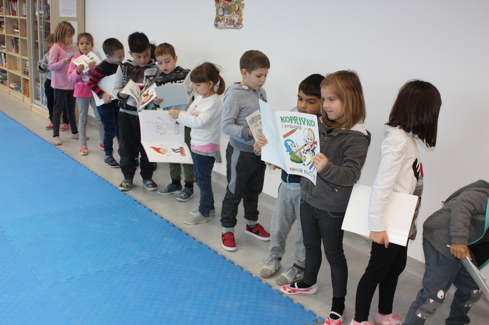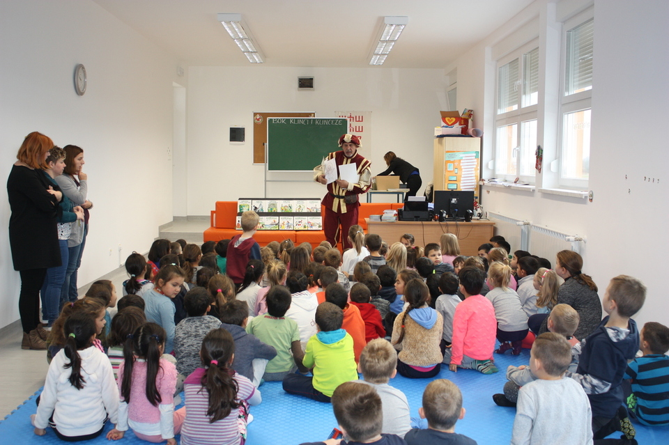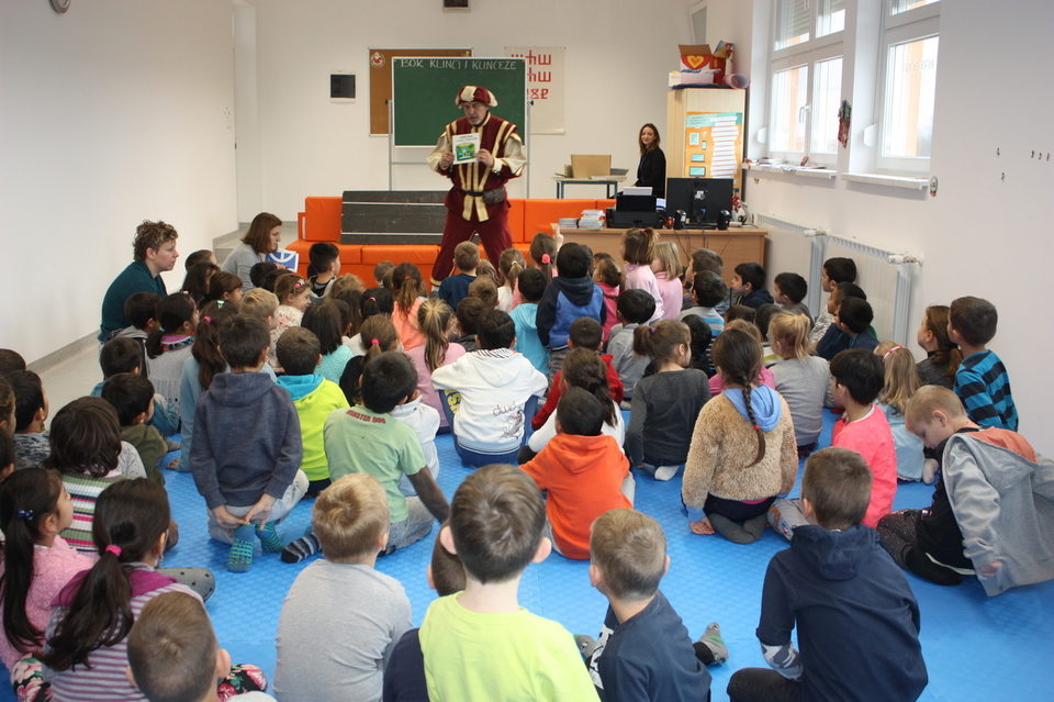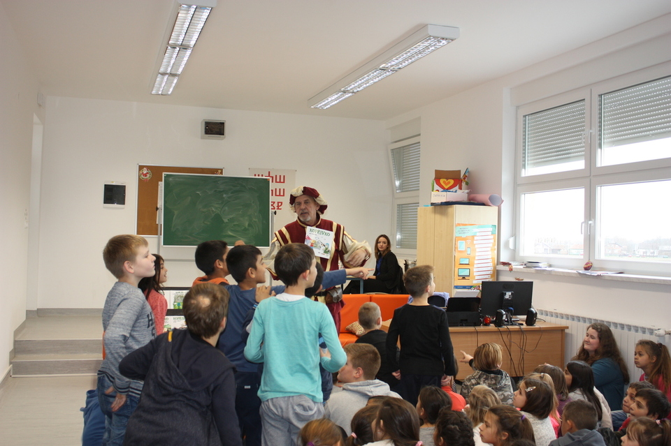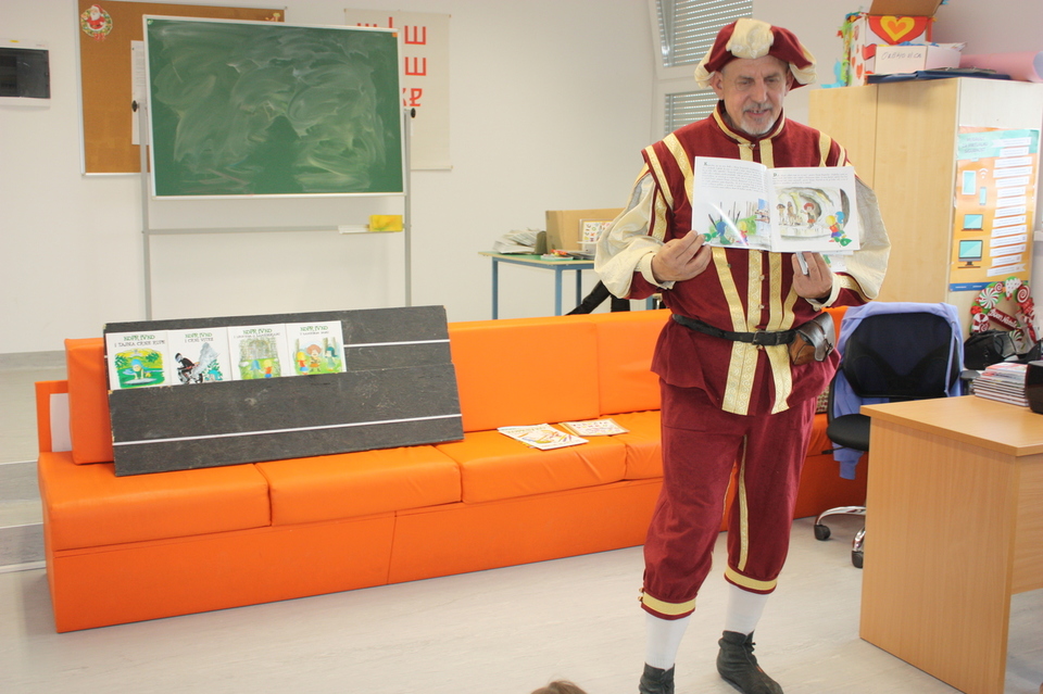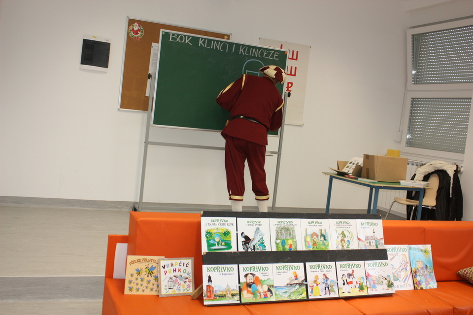 Posljednje srijede u studenom našu školsku knjižnicu posjetio je zamaskirani Branimir Dolenec iz Koprivnice. Autor je serijala slikovnica iz projekta „KOPRIVKO“, koje je predstavio najprije predškolcima i učenicima 1. razreda, a potom i ostalim učenicima razredne nastave.