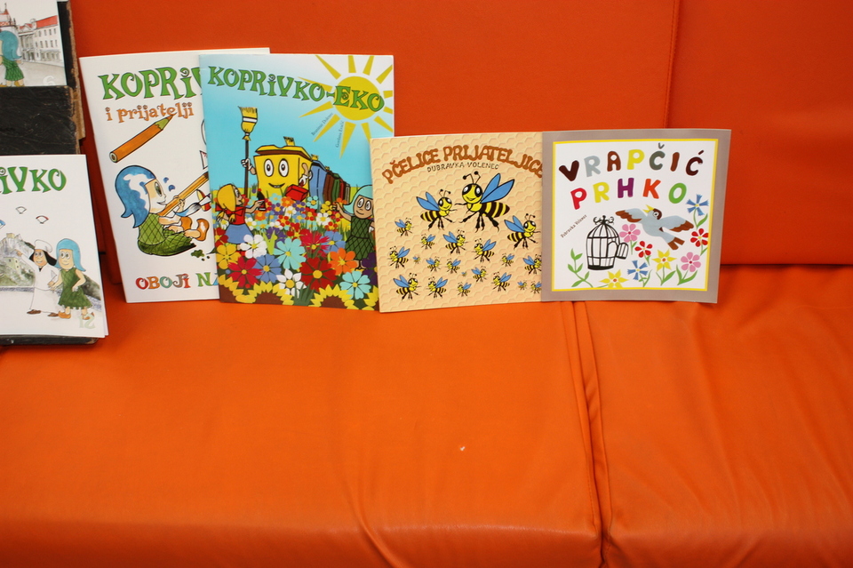 Predstavio je još nekoliko slikovnica: bojanku Koprivko i prijatelji, Koprivko-eko, Vrapčić Prhko i Pčelice prijateljice. Po završetku susreta djeca, odgojiteljice i nastavnice mogli su kupiti slikovnice o Koprivku po cijeni od 10.00 kn. Djeci su se toliko svidjele slikovnice da je većina djece stajala u redu i izabrala po 1 slikovnicu ili bojanku.