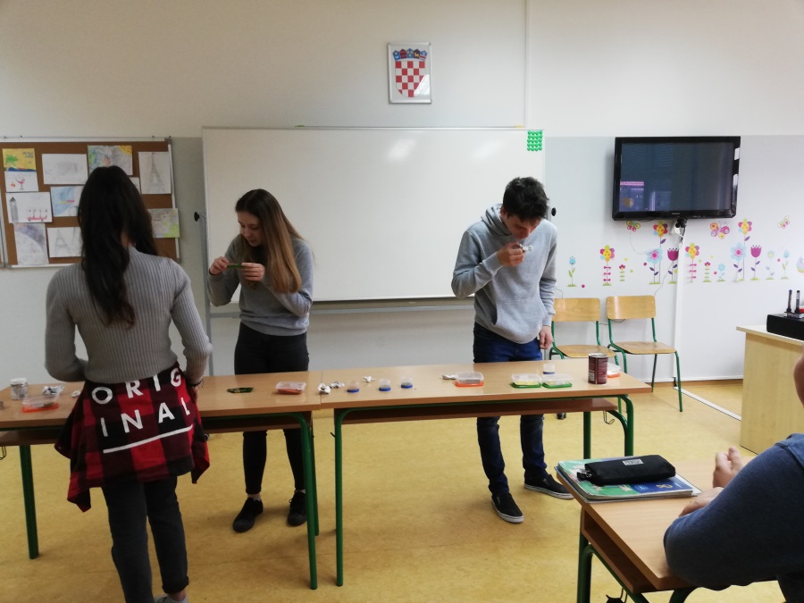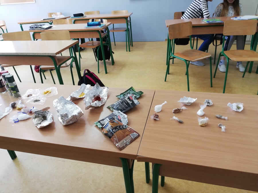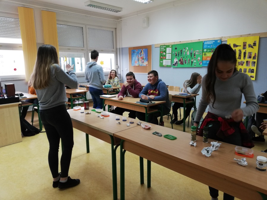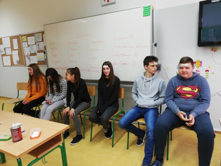 Die Schüler der 8.A und der 8.B Klasse haben sich Mühe gegeben, um das Thema "Gesund essen" noch interessanter zu machen. Sie haben von zu Hause viele verschiedene Gewürze mitgebracht und der Erwerb des Wortschatzes wurde durchs riechen, probieren und tasten erfolgreich absolviert.