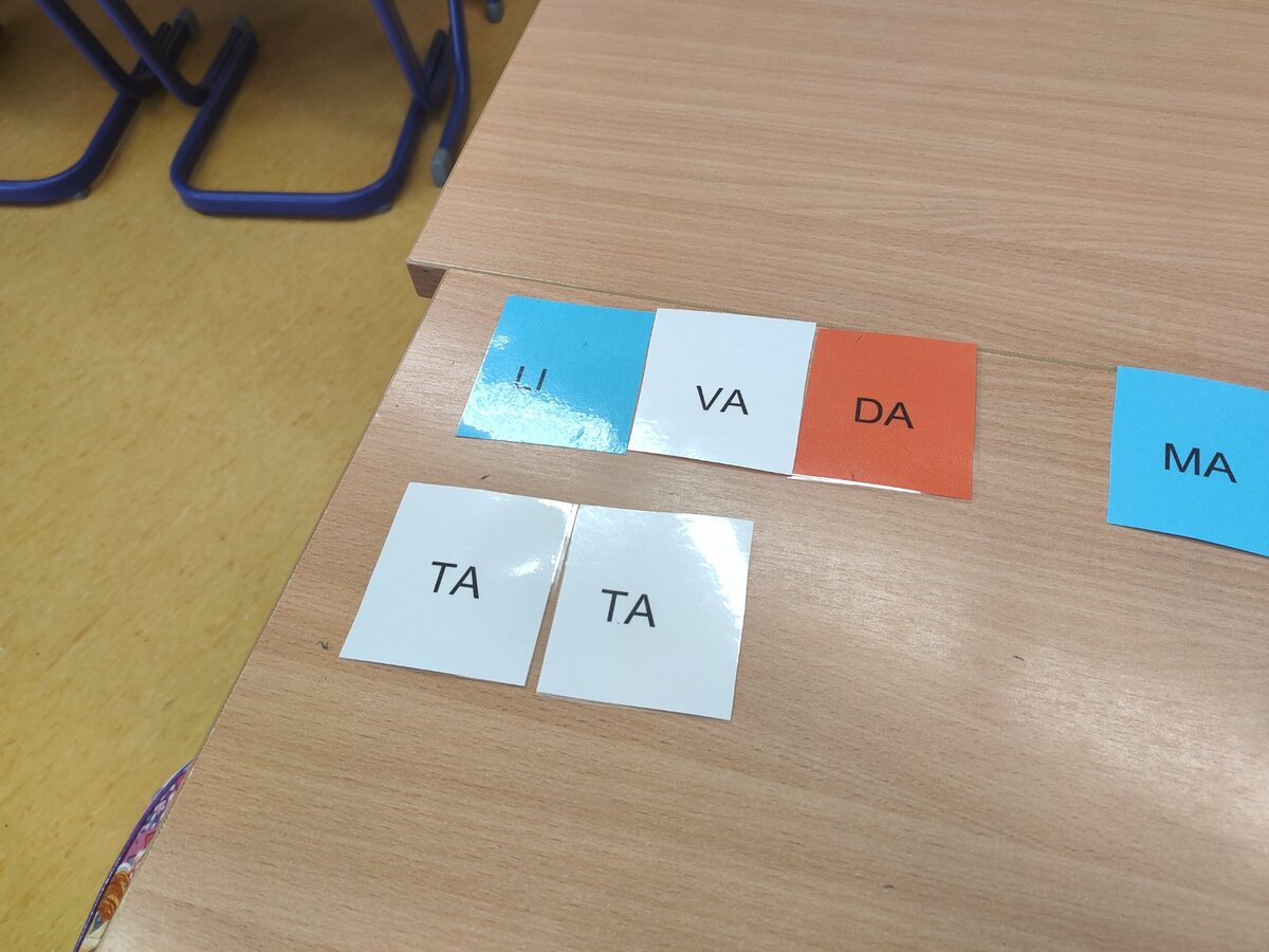 Kartice sa slogovima koristili su tako da su odabrali kartice sa slogovima te pomoću njih slagali riječi. Svaki je učenik stvarao svoje riječi pomoću kartica, a zatim su ih čitali. Naposljetku su osmišljavali rečenicu koja sadrži složenu riječ. Bezopasni pikado igrali su tako da su lopticom gađali polja raznih boja. Zatim su odabrali boju kartice s obzirom na to koju su boju pogodili u polju. Na svakoj se kartici nalaze zadatci koje učenik mora riješiti. Na karticama ružičaste boje zadana je riječ, a učenik mora osmisliti rečenicu koja će tu riječ sadržavati. Na plavoj je kartici zadana rečenica, a učenik je mora pročitati te preoblikovati u negaciju. Na ljubičastoj je kartici pomiješani redoslijed riječi, učenik mora oblikovati pravilnu rečenicu.