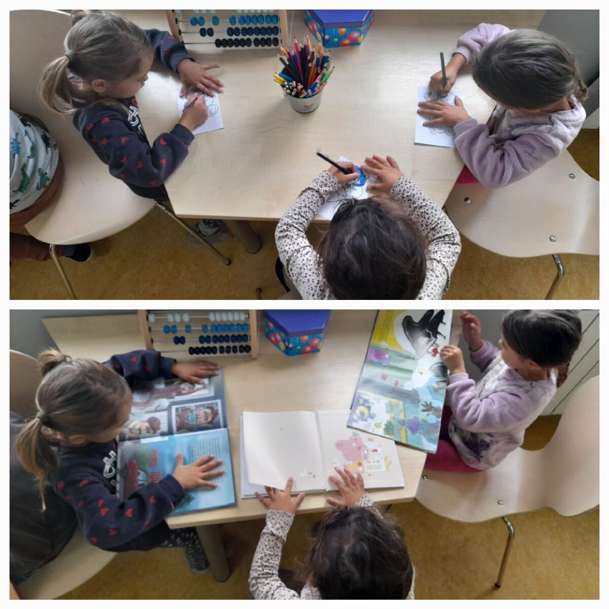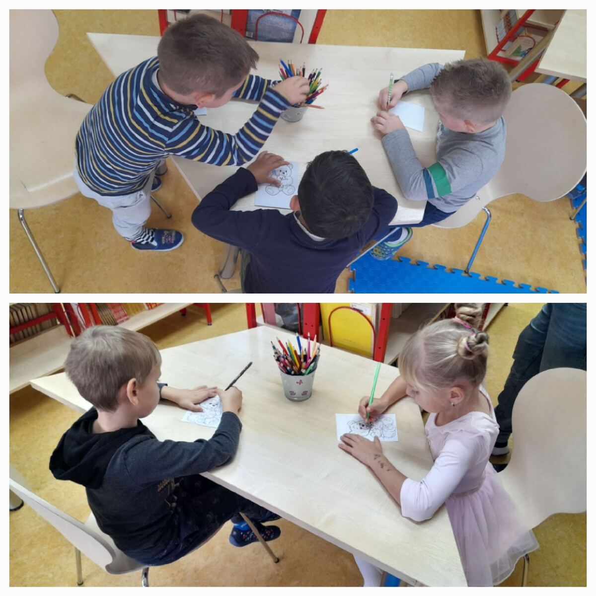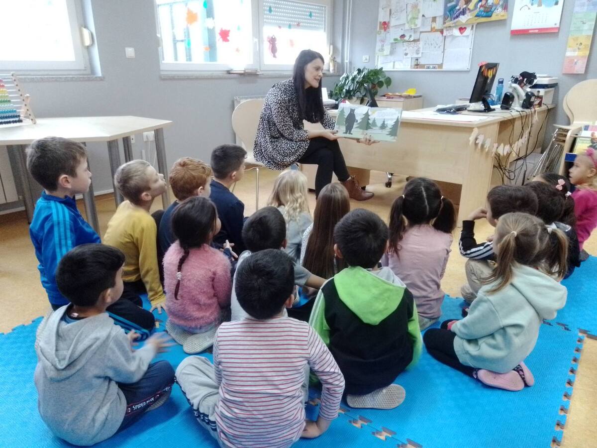 Najmlađi i najslađi za sam kraj, djeca iz triju skupina odslušala su slikovnicu Medo koji voli grliti, aktivno sudjelujući u raspravi nakon čitanja i kreativni zadatak koji su uspješno odradili. Najživlje je bilo kad su sami mogli potražiti slikovnicu i prelistati je. Djeca vole prostor knjižnice i rado mu se vraćaju. Ovakvi susreti najbolje opisuju važnost poticanja čitalačke pismenosti od najranije dobi i njezine važnosti za daljnji obrazovni sustav.