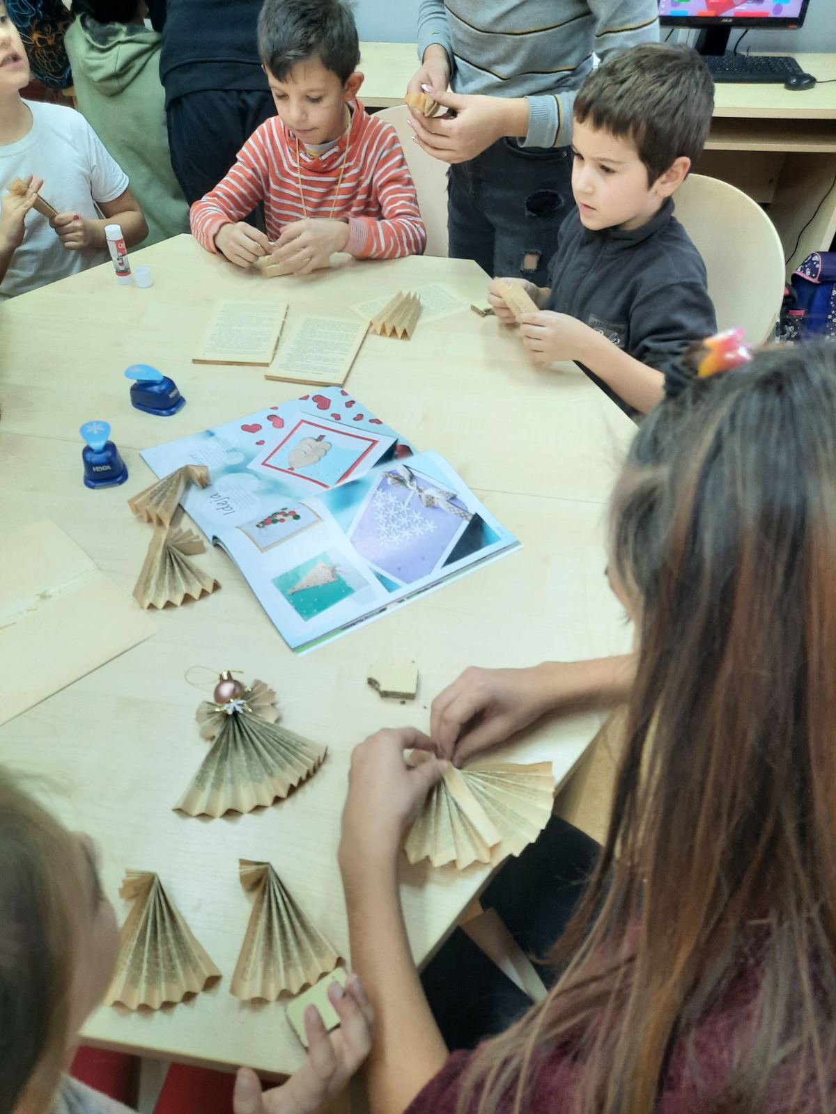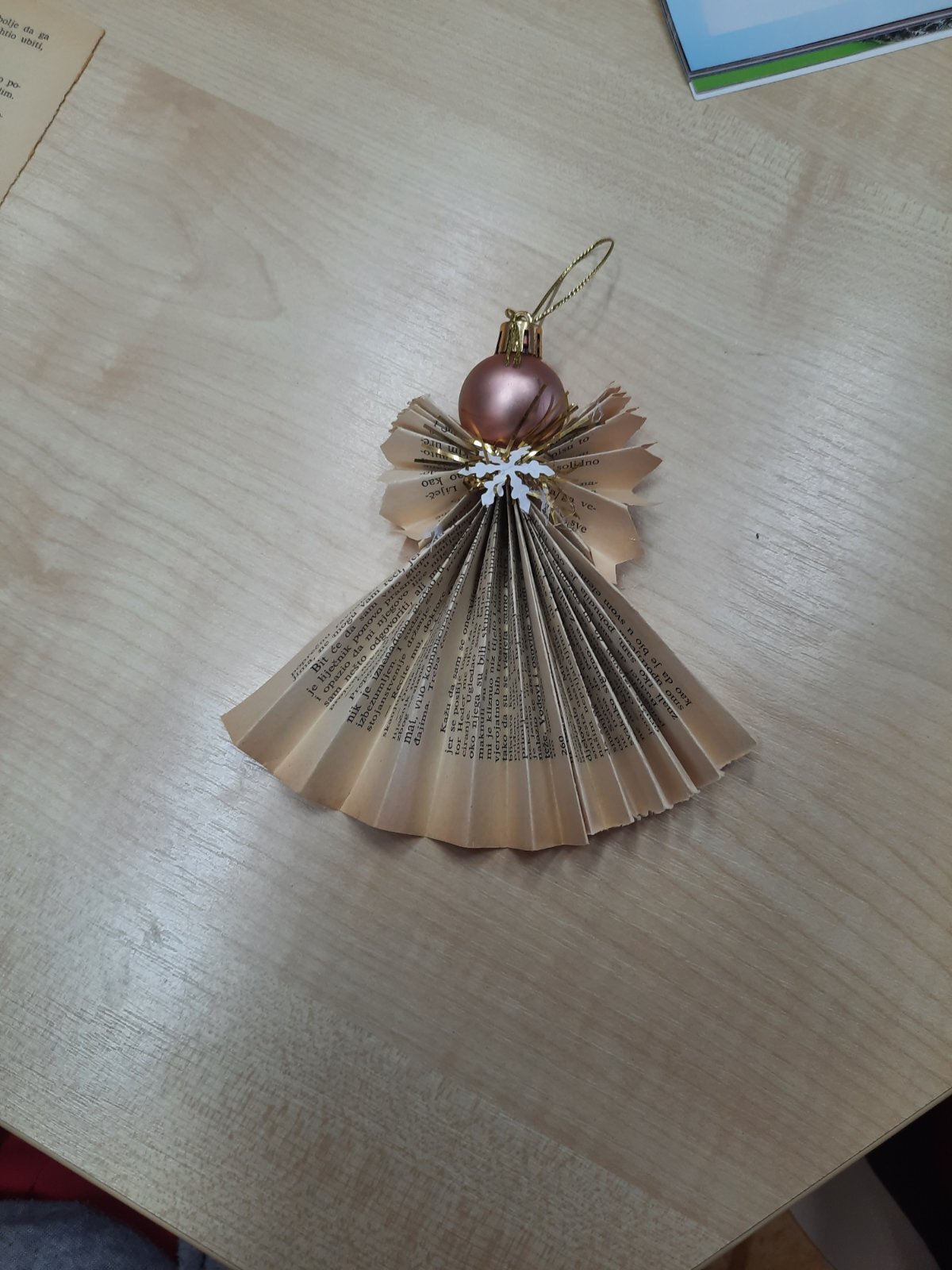 Stare, oronule, požutjele knjige reciklirane su na najljepši mogući način u božićne anđele koji će krasiti nečije drvce. Uz anđele, učenici su izrađivali i čestitke koje će pokloniti dragim njima ljudima. Bilo nam je lijepo i kreativno i ponovit ćemo sigurno sljedeće godine.