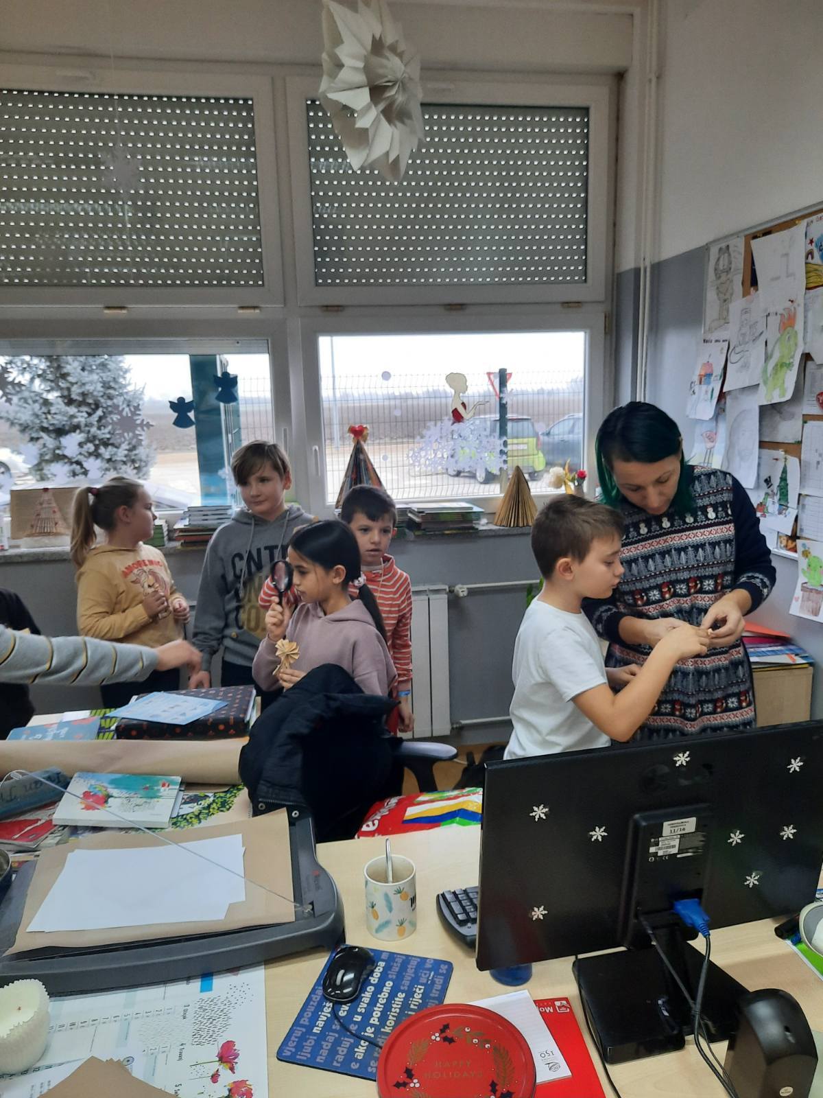 U utorak 20.12.2022. bilo je vrlo veselo i živahno u knjižnici. Šesti i sedmi sat bila je organizirana je božićna radionica uz pomoć učenica iz 7. b razreda i knjižničarke.