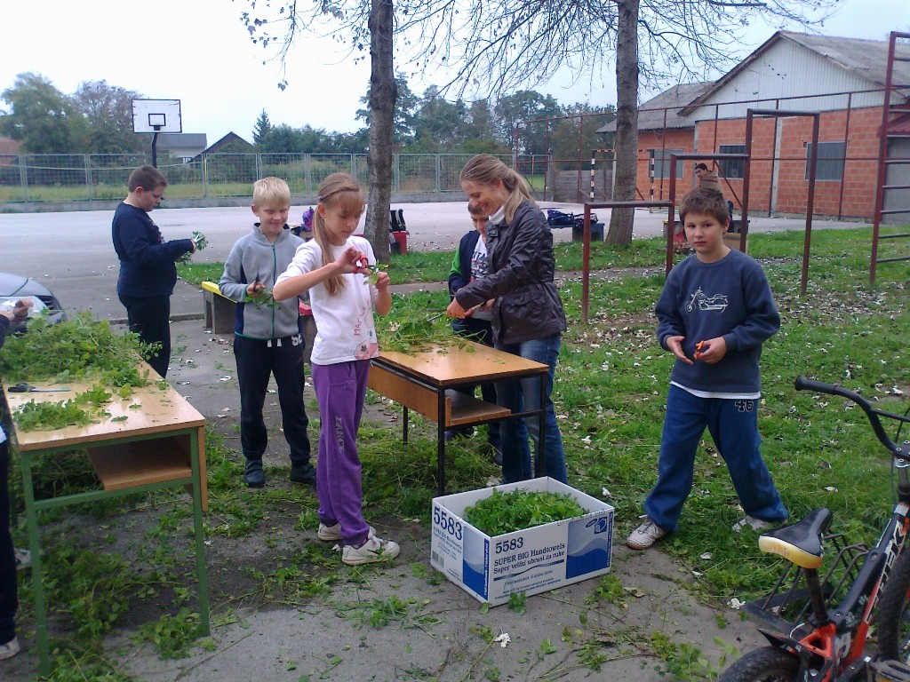 Početkom listopada učenici PŠ Podbrest i njihove učiteljice Emina Mlinarić i Senija Zadrvec-Kermek iz školskog su cvjetnjaka ubrali matičnjak - ljekovitu biljku koju su posadili prije godinu dana.