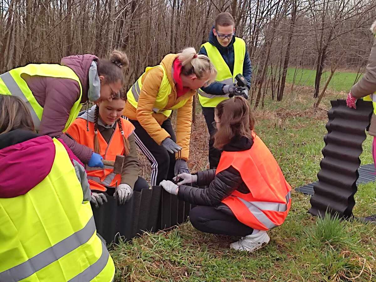 Volontersku akciju organizirala je i provela Međimurska priroda – Javna ustanova za zaštitu prirode- Međimurksa priroda, zajedno s brojnim volonterima, ali i našim prijateljima iz Zajednice škola biosfere rezervata Mura – Drava. Kad se male i velike ruke slože, sve se može, pa tako i brzinom munje postaviti ogradu dugu nekoliko stotina metara. Ova inicijativa prvi puta provedena je prije 11 godina, a sad se već tradicionalno ograde postavljaju na najkritičnijim točkama u Črečanu, Selnici i Križopotju. Imali smo čast ograde postavljati na novoj lokaciji u Palovcu koja se pokazala kao najopasnija za prelazak naših žaba. Naime, zbog sve većih čimbenika koji dovode do nestajanja vodenih staništa, žabe u potrazi za istima da bi se mogle razmnožavati često stradavaju pod kotačima automobila. Vidljivo je to po stradalim žabama na kolnicima. Iz tog razloga postavljeni su prometni znakovi koji upozoravaju vozače da uspore jer trenutno voze kroz dio koji se pokazao kao put na kojem vodozemci (žabe) prelaze kolnik do obližnjeg vodenog staništa. Isto tako postavljanjem ograda i kanti iza ograda sprječava se da žabe prelaze kolnik, već ih volonteri prenose kantama preko ceste. Svi vodozemci u Republici Hrvatskoj zakonom su zaštićeni, a sve veća onečišćenja još više doprinose smanjenju ovih vrsta. Najmanje što možemo učiniti je pobrinuti se da sudjelovanjem u ovakvim akcijama sačuvamo žabe i omogućimo im razmnožavanje i nastavak potomstva. U narednim tjednima naše će žabice migrirati. Mi ćemo se truditi prenijeti ih do odredišta, a vozače pozivamo na povećan oprez. Zajedno ovaj svijet možemo učiniti boljim mjestom.