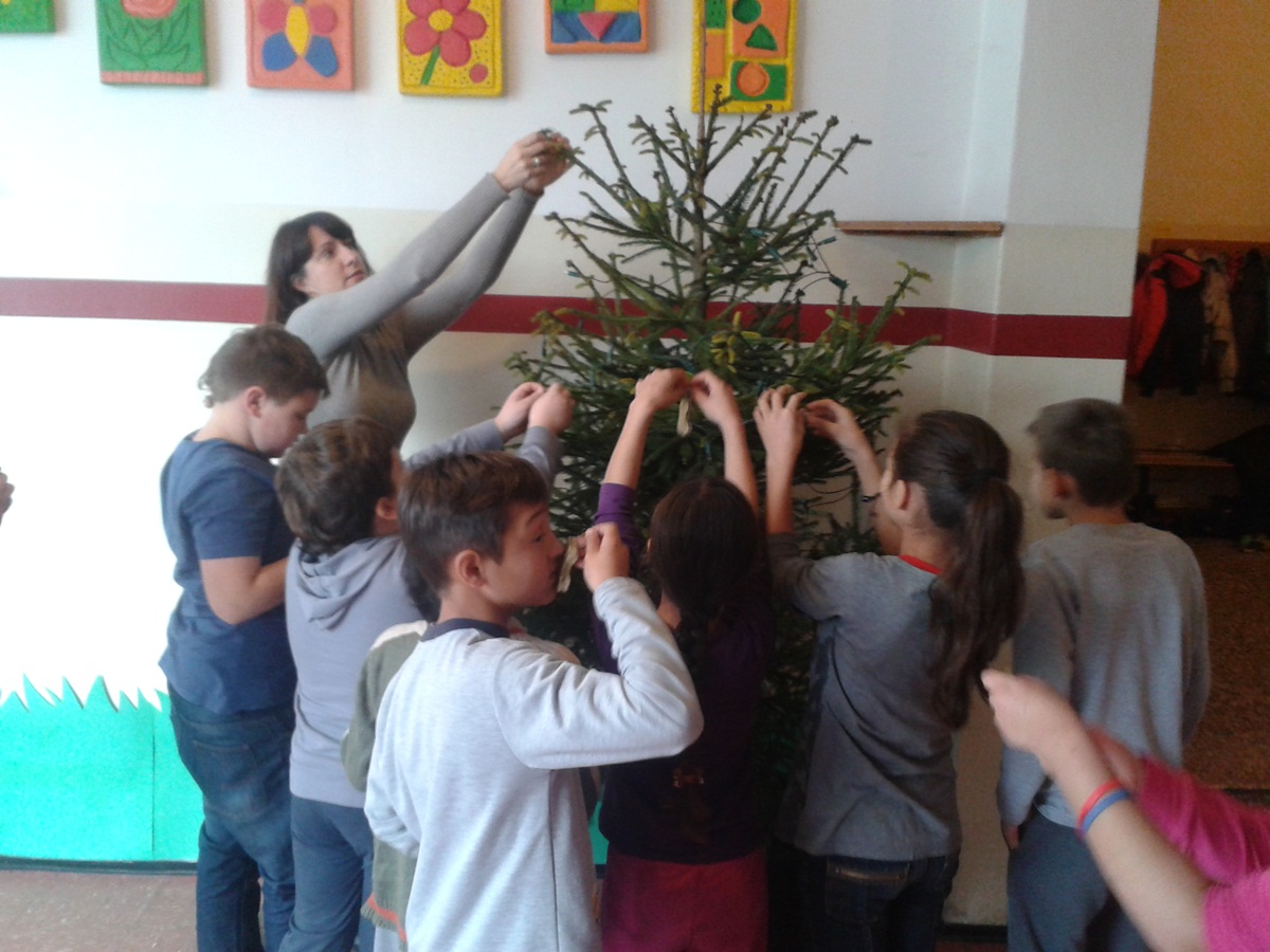 S prvim danima prosinca započela je božićna bajka u produženom boravku. U toplo uređenom holu, gdje su učiteljice i učenici ukrasili bor i izradili kamin, zapjevao je i mali božićni zbor. Njegova pjesma rasplesala je elegantne snježne balerine i poigrala se sa bijelim pahuljama.